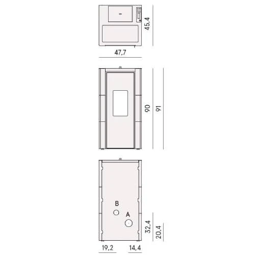 – Maße Grundgerät: 91 x 47,7 x 45,4 cm (Höhe x Breite x Tiefe)