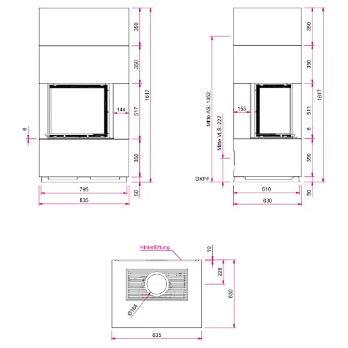 Die Tür des Kamins ist nicht nur ein Zugangspunkt, sie ist ein Ausdruck von Funktionalität und Anpassungsfähigkeit. Ob Sie sich für eine drehbare oder hochschiebbare Tür entscheiden, jede Tür bietet eine einladende Höhe von 510 mm und eine Breite von 560/350 mm. Genießen Sie den Luxus der Auswahl und das Gefühl der Zufriedenheit, das mit der richtigen Wahl einhergeht.