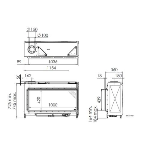 | Maße Sichtscheibe ca (H x B) (mm) | 420 x 1000 |