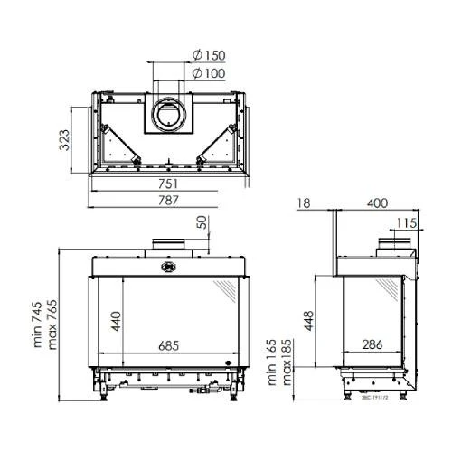 | Sichtscheiben | Panoramakamin: 3 Scheiben, dreiseitige-Kamine |