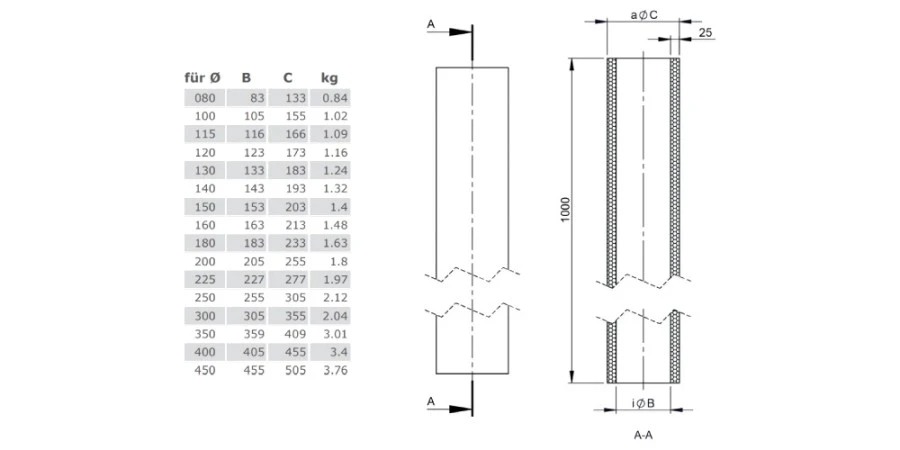 - Dämmschale für Isolierung von einwandigen Edelstahlrohren