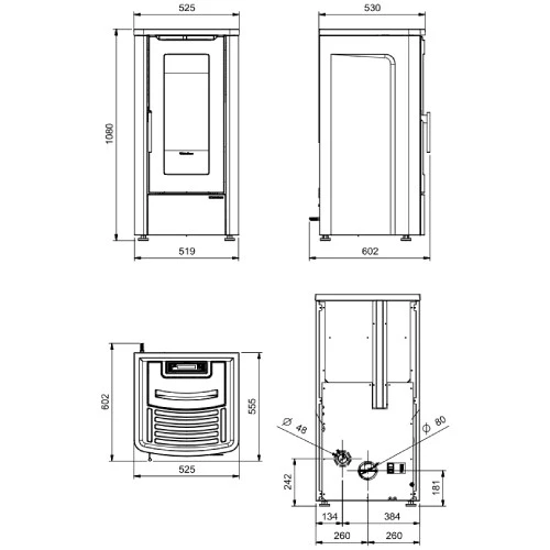 Der La Nordica Extraflame Dahiana VFS Pelletofen ist ein Kunstwerk, das sowohl in Sachen Ästhetik als auch in Sachen Haltbarkeit punktet. Mit seinen Abmessungen von 1080 mm Höhe, 525 mm Breite und 602 mm Tiefe ist er kompakt und doch leistungsstark. Die Türen aus Gusseisen versprechen extreme Langlebigkeit und sorgen zu jeder Zeit für eine perfekte Abdichtung.