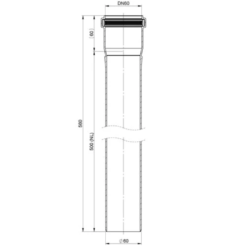 Längenelement aus Kunststoff, Länge 560 mm. Einwandige, flexible Systemabgasleitung aus Kunststoff für Brennwertfeuerstätten.