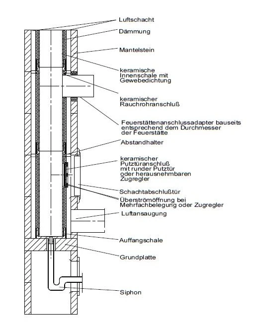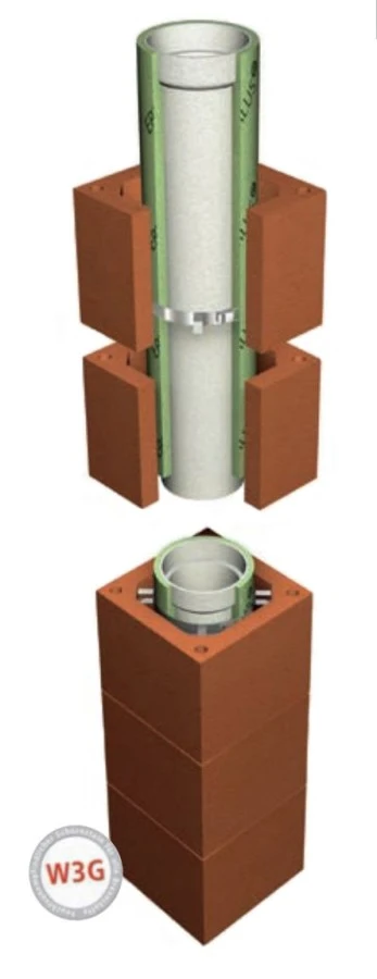 Durch die innovative Verbindungstechnik ist die Zusammensetzung des Systems schnell, einfach und sicher. Die gedämmten Keramikrohre werden mittels Muffe miteinander verbunden. Alternativ ist neben der Steckverbindung auch die Verwendung der keramischen Gewebedichtung möglich. Um die Schornsteinrohre herum befinden sich Leichtbeton-Mantelsteine.