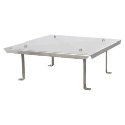 Wie alle Modelle für die Schornsteinabdeckung, ist auch die Meidinger Scheibe mit einem praktischen Klappmechanismus erhältlich. Hiermit lässt sich die Kaminabdeckung kinderleicht öffnen. Sie müssen das Bauteil nicht abmontieren um an den Schornsteinschacht heranzukommen. Die Reinigung des Schornsteins erfolgt wie bisher auf einfache Art und Weise. Ferner sind die Stützfüße der Schornsteinabdeckung optional auch in längerer Ausführung lieferbar. Hohe Stützfüße bieten viele Vorteile. Zum einen versperrt die Meidinger Scheibe dadurch dem Abgas nicht den Weg. Zum anderen kann die Kondensat-Bildung auf der Unterseite der Kaminabdeckung auf ein Minimum reduziert werden.