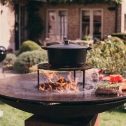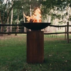 - Feuerschale auf sockel mit abnehmbarer Plancha-grillplatte