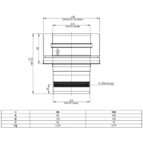 Steckverbindung Muffe / Sicke mit innenliegender Spezialdichtung