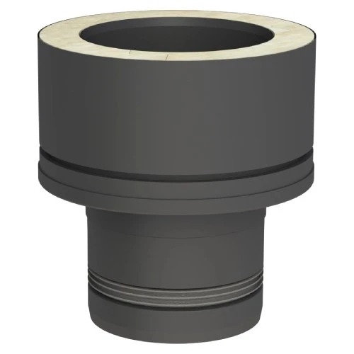 Verbindungsleitung aus Edelstahl 1.4404 mit Muffe-Sicke Steckverbindung und innenliegender Dichtung für den Einsatzbereich im Wohn- und Sichtbereich für frei im Raum stehende Kaminöfen nach DIN 1298