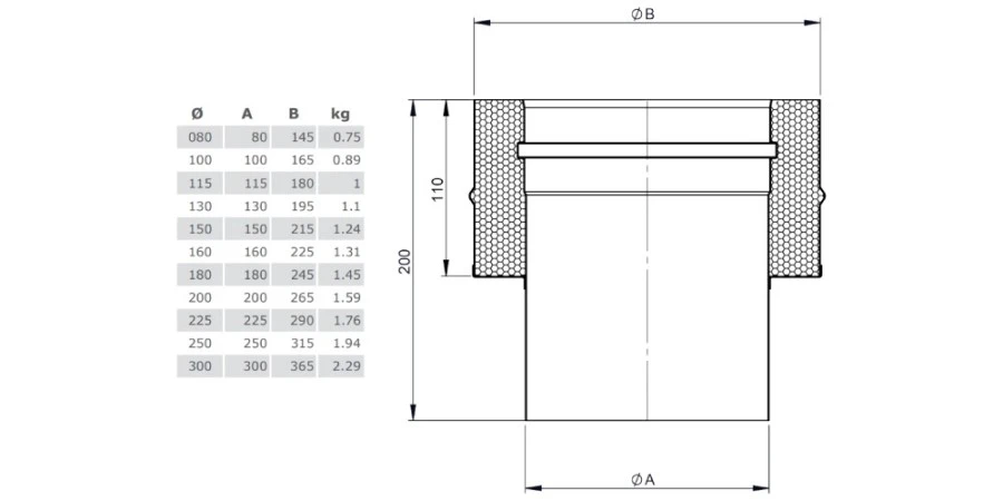 Mit dem Übergang kann man Kupferschornsteine an Öfen anschließen.