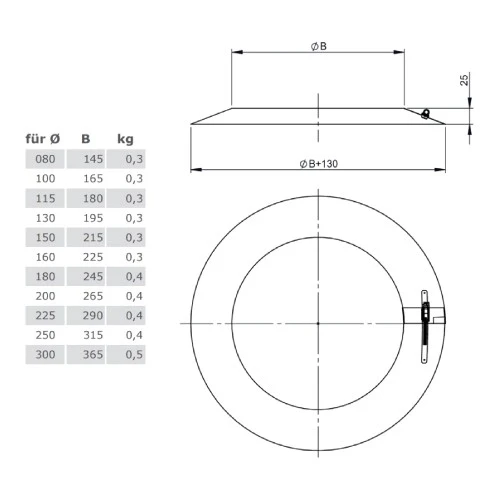 - Öffnungsgröße der Wandrosette = Innenrohrdurchmesser + 65 mm