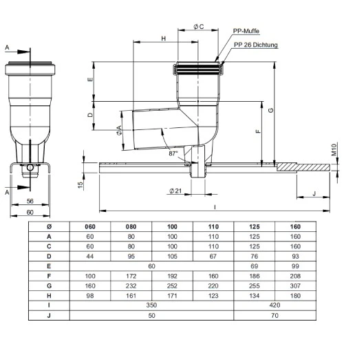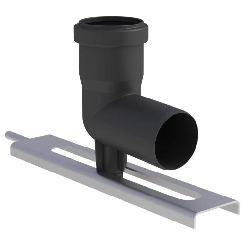 Winkel, Neigung 87°, mit Stützfuß und Auflageschiene. Einwandige, flexible Systemabgasleitung aus Kunststoff für Brennwertfeuerstätten.